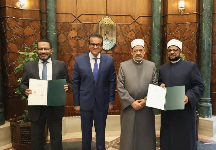 ، نائب رئيس مجلس الوزراء ووزير الصحة والسكان، توقيع بروتوكول تعاون مشترك بين الأزهر الشريف ووزارة الصحة، بمقر المشيخة، لتعزيز التعاون في مجالات التوعية الصحية ودعم المبادرات القومية.