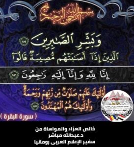بتقديم خالص تعازى الجالية المصرية برومانيا