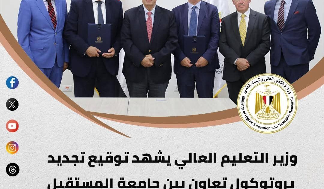 شهد الدكتور أيمن عاشور وزير التعليم العالي والبحث العلمي، توقيع تجديد بروتوكول تعاون بين جامعة المستقبل وجامعة كورك الأيرلندية، وبموجب بروتوكول التعاون، سيتم استمرار منح درجات علمية مزدوجة لطلاب كلية الصيدلة بمرحلتي البكالوريوس والدراسات العليا، بالإضافة إلى تكثيف برامج التبادل الطلابي وأعضاء هيئة التدريس، وزيادة التبادل العلمي، فضلًا عن تعزيز التعاون المشترك في المجالات الأكاديمية والعلمية والبحثية بين الجامعتين، وأشار الوزير إلى الرؤية الشاملة للدولة بأن تكون مصر منصة تعليمية جاذبة، ووجهة للراغبين في الحصول على خدمات تعليمية متميزة في المنطقة العربية والقارة الإفريقية والشرق الأوسط.