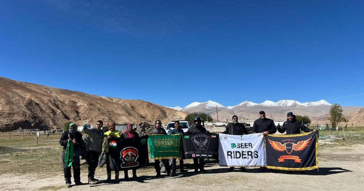 الرحالة الهندي الكابتن مير شكيل الرحمن وزوجته الرحالة السعودية الكابتن أمل أحمد يواصلون مع المغامرون من المملكة العربية السعودية والامارات رحلتهم