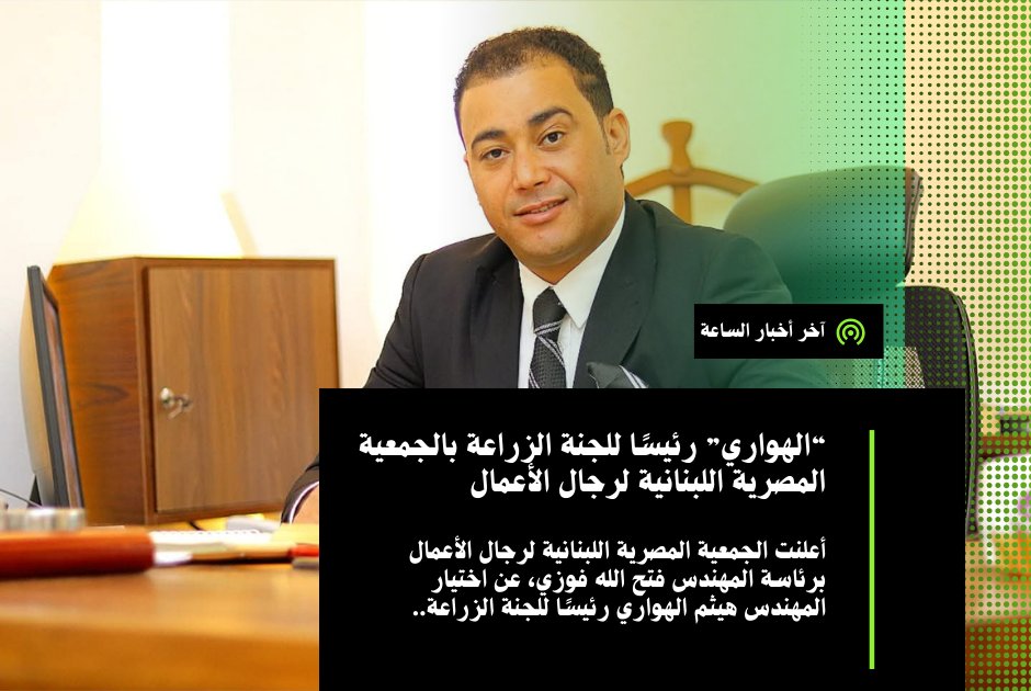 أعلنت الجمعية المصرية اللبنانية لرجال الأعمال برئاسة المهندس فتح الله فوزي، عن اختيار المهندس هيثم الهواري رئيسًا للجنة الزراعة.