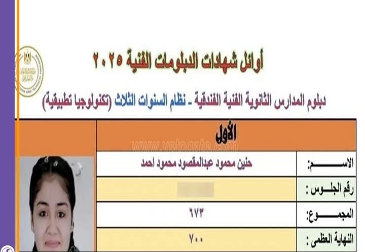 بالأسماء والصور : 24 فتاة يكتسحن الصفوف الأولى في أوائل الدبلومات الفنية 2025