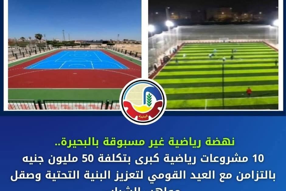 تحت رعاية وتوجيهات الدكتورة/ جاكلين عازر – محافظ البحيرة، تم تنفيذ ١٠ مشروعات في مجال تطوير الهيئات الشبابية والرياضية بتكلفة إجمالية بلغت ٥٠ مليون جنيه، تستهدف رفع كفاءة البنية التحتية الرياضية وتوفير بيئة آمنة ومتكاملة لممارسة مختلف الأنشطة الشبابية والرياضية.