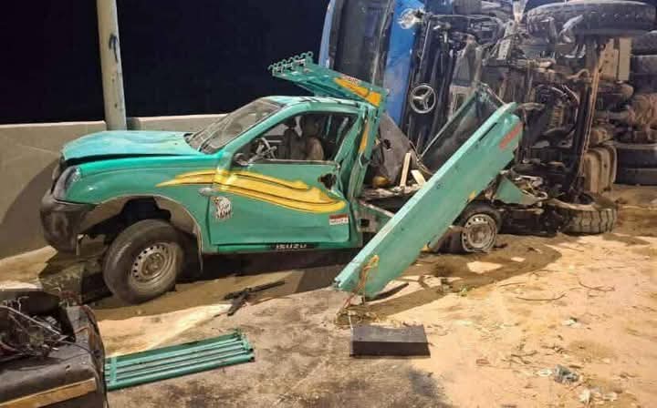 ووقع حادث التصادم بين سيارة نقل وأخرى ربع نقل مع سيارة ملاكي .