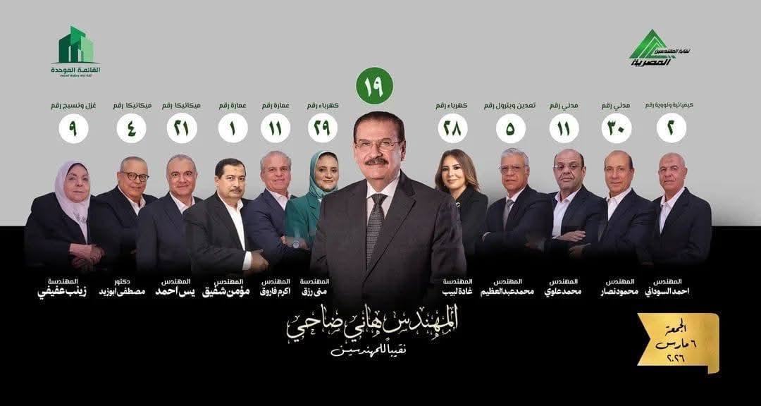 بإستطلاع رأى عدد كبير من السادة المهندسين على مستوى المحافظات تبين رجاحة كفة القائمة الموحدة برئاسة المهندس هانى ضاحى الوزير السابق بقوة نظرآ لتاريخه السابق