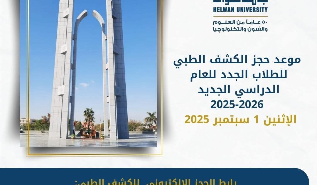 الرئيسيةتعليمجامعة حلوان تعلن موعد ورابط حجز الكشف الطبي للطلاب الجدد للعام الدراسي الجديد 2025-2026