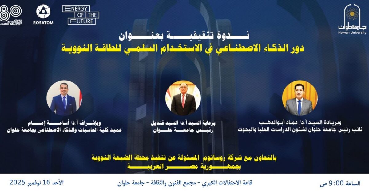 جامعة حلوان تنظم ندوة هامة بعنوان “دور الذكاء الاصطناعي في الاستخدام السلمي للطاقة النووية”
