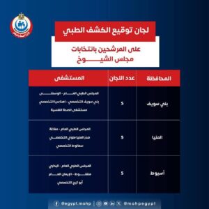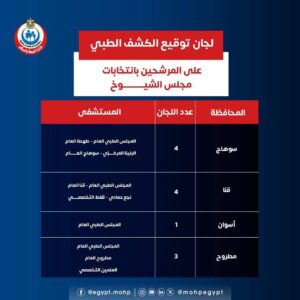 الرئيسيةمحلياتجدول انتخابات مجلس الشيوخ وأماكن توقيع الكشف الطبي على المرشحين