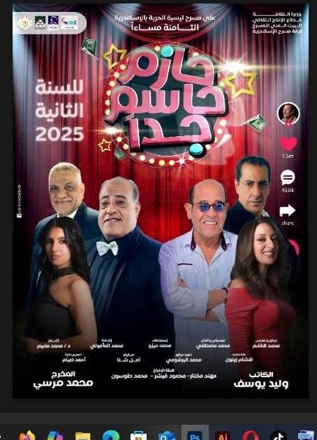 وتقدّم فرقة مسرح الإسكندرية بقيادة المخرج محمد مرسي العرض المسرحي “حازم حاسم جدًا”، وذلك ضمن خطة التجوال والمواجهة بالتعاون مع فرقة المواجهة والتجوال برئاسة المخرج محمد الشرقاوي، حيث تُقام العروض بالمجان في عدد من محافظات الوجه البحري.