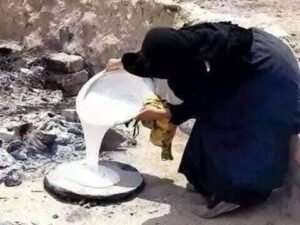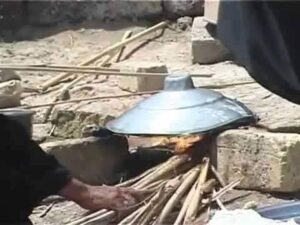 حيث ينقع الأرز ويطحن، ثم يسكب على (الطابگ)