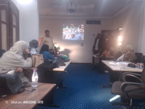 ألقى الدكتور محمد فاروق استشاري تدريب الصحة النفسية، المحاضرة الختامية للورشة التدريبية داخل جمعية سوا ، حملت المحاضرة عنوان “العناصر الأساسية لإدارة الصف الفعالة”، حيث ناقش مع الحضور مجموعة من التدريبات الجماعية التي تميزت بالحب والألفة، والتي ارتسمت على وجوه المشاركين