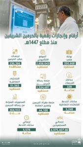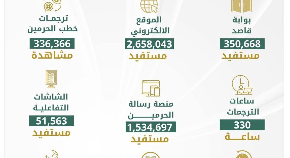 وتعكس هذه الأرقام توسع الاعتماد على المنصات الرقمية في تقديم المحتوى الديني الموثوق بعدة لغات بما يسهم في رفع الوعي الشرعي وتحسين تجربة الزائرين داخل الحرمين