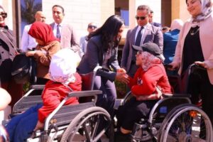 وقامت الوزيرة بتوزيع 150 جهاز لاب توب ناطق للطلاب من ذوي الإعاقة البصرية إلى جانب 25 كرسيا متحركا كهربائيا للطلاب من ذوي الإعاقة الحركية على أن تستكمل خلال الفترة المقبلة عمليات التوزيع لتشمل ألف عصا بيضاء و125 كرسيا متحركا إضافيا وعددا من الأجهزة المساندة