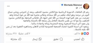 خرج مرتضى منصور اليوم من خلال صفحته الشخصية على الفيسبوك وكتب يقول :