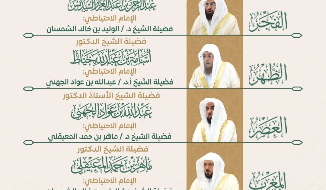 أولًا: جدول أئمة المسجد الحرام: