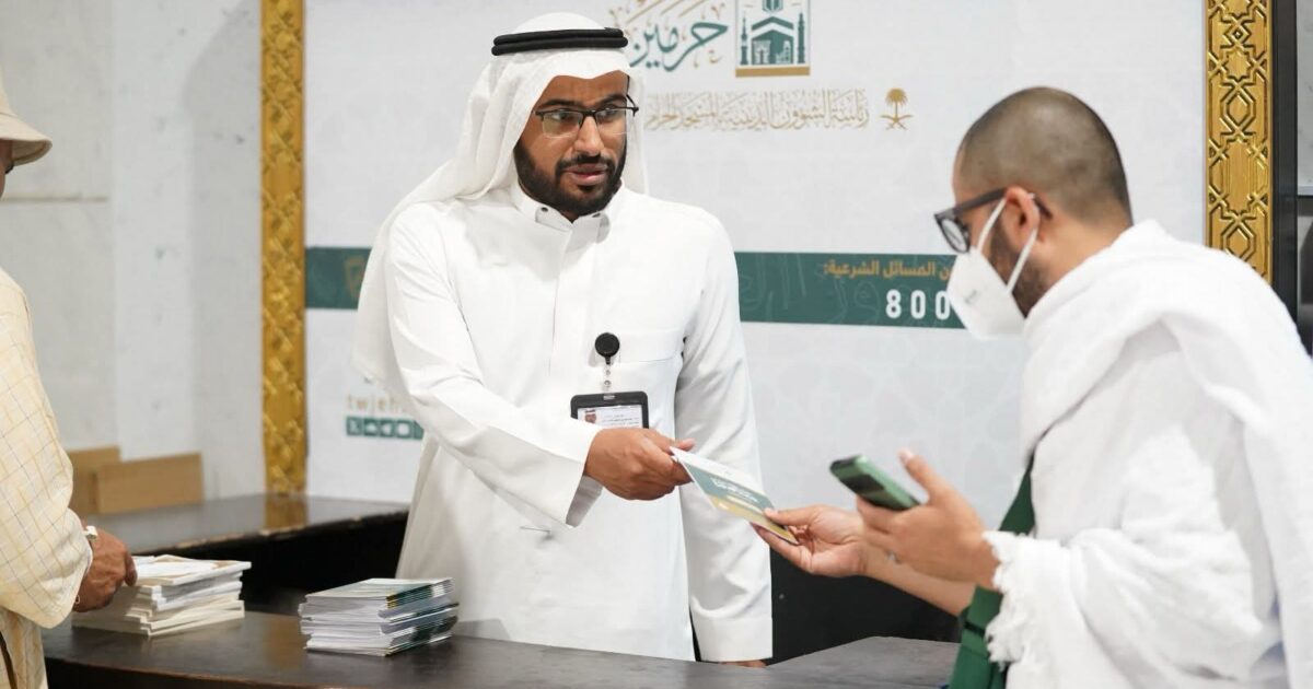 رئاسة الشؤون الدينية تقوم بتوعبة وتوجيه زوار بيت الله الحرام من خلال توزيع الكتيّبات العلمية والتوجيهية