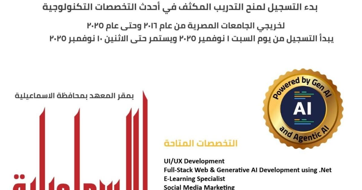واختتم رئيس الجامعة تصريحه بدعوة خريجي جامعة قناة السويس والجامعات المصرية إلى الاستفادة من هذه الفرصة التدريبية المتميزة، لما توفره من مهارات احترافية وتأهيل تقني متقدم يعزز فرص الشباب في الالتحاق بسوق العمل المحلي والدولي في مجالات تكنولوجيا المعلومات والذكاء الاصطناعي.
