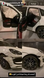 ونشر مصطفى فتحي، عبر خاصية ستوري على صفحته الشخصية عبر موقع التواصل الاجتماعي «إنستجرام» صور لسيارته معلقًا: «الحمدالله ربنا نجانا من الموت».