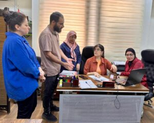 تابعت المدير العام لدار المأمون للترجمة والنشر، السيدة إشراق عبد العادل، صباح اليوم الثلاثاء 26 آب 2025، مع ممثلين عن قسم الدوريات وشعبتي النشر والتخطيط، خلال زيارتها إلى شعبة تكنولوجيا المعلومات، آلية تقديم خدمات الدار في الترجمة والنشر والدورات عبر منصة “أور” الإلكترونية.