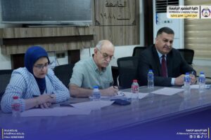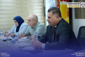 مؤكدا على أهمية ترسيخ العمل الجماعي والتنسيق بين جميع الأقسام، مشددًا على ضرورة إزالة العقبات أمام الطلبة وتهيئة أجواء دراسية محفزة وفاعلة، تنسجم مع رسالة الكلية وأهدافها العلمية والتربوية