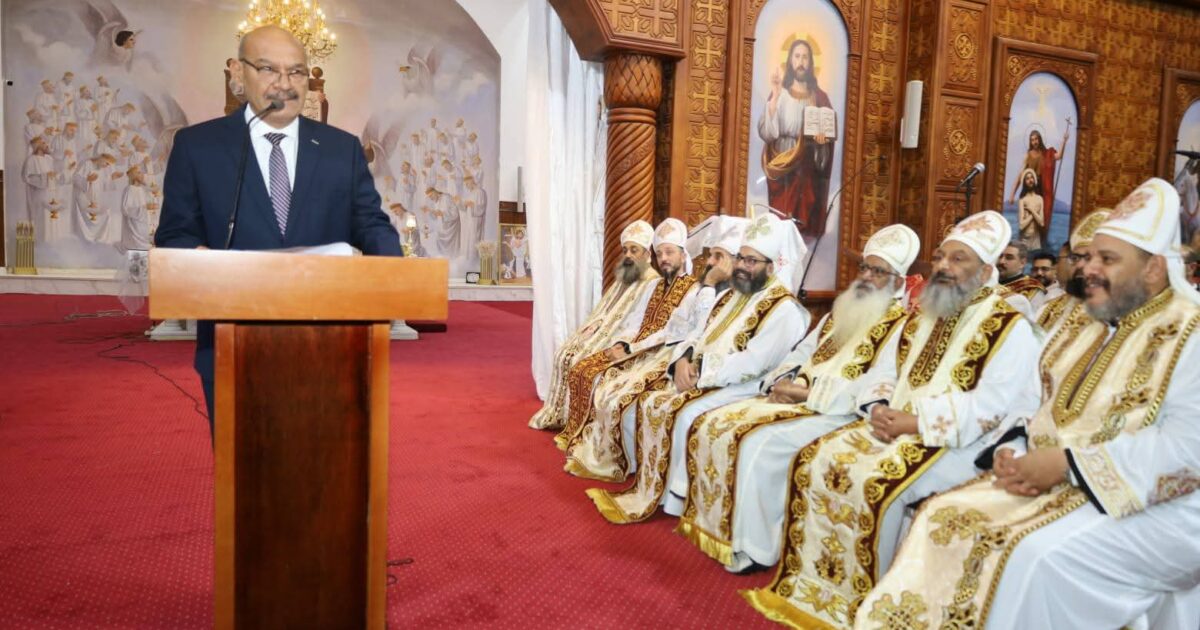 وقام المحافظ والقيادات المرافقة لسيادته بزيارة كنيسة مار جرجس بمدينة الصباح بحي فيصل لتقديم التهنئة للأنبا بموا، أسقف محافظة السويس وقيادات الكنيسة والأقباط الأرثوذكس بكنيسة مارجرجس، بمناسبة عيد القيامة المجيد.