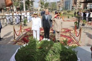محافظ القليوبية يضع إكليل الزهور على النصب التذكاري للجندي المجهول بمدينة بنها.