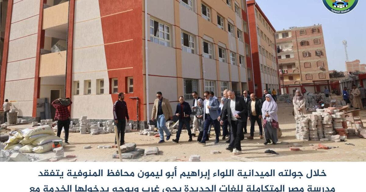 في إطار جولاته الميدانية المستمرة لمتابعة المشروعات التنموية والخدمية، تفقد اللواء إبراهيم أبو ليمون محافظ المنوفية، التجهيزات النهائية بمدرسة مصر المتكاملة للغات الجديدة بنطاق حي غرب شبين الكوم، تمهيدًا لدخولها الخدمة مع بداية الفصل الدراسي الثاني، وذلك بحضور الأستاذ هاني عنتر وكيل وزارة التربية والتعليم، والمهندسة وفاء صبحي مدير عام هيئة الأبنية التعليمية بالمحافظة، والأستاذة نهى حبيب مدير إدارة شبين الكوم التعليمية، والأستاذ هيثم صادق رئيس حي شرق، والأستاذ سيد شعبان رئيس حي غرب شبين الكوم.