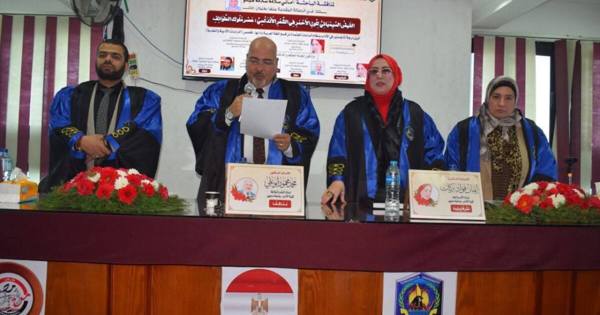 والاستاذ الدكتور اسلام ربيع السعيد عطية استاذ الادب الاندلسي المساعد كلية الآداب جامعة دمياط مناقشا