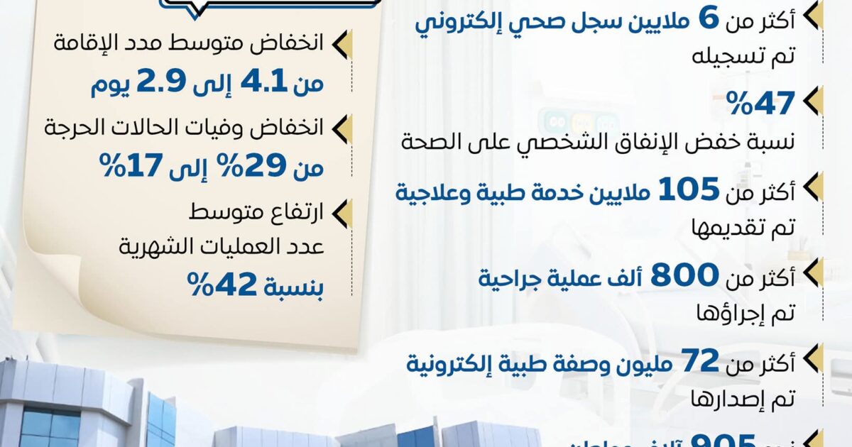 وشهدت المرحلة الأولى من المنظومة تقديم أكثر من 105 ملايين خدمة طبية وعلاجية وتغطية 6 ملايين منتفع عبر 328 منشأة صحية،