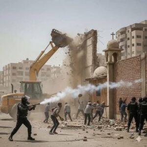 وقد حدثت اشتباكات بين رجال الأمن وأقباط 15 مايو بسبب هدم سور مقام حول قطعة أرض مخصصة لبناء كنيسة للسيدة العذراء والبابا كيرلس.