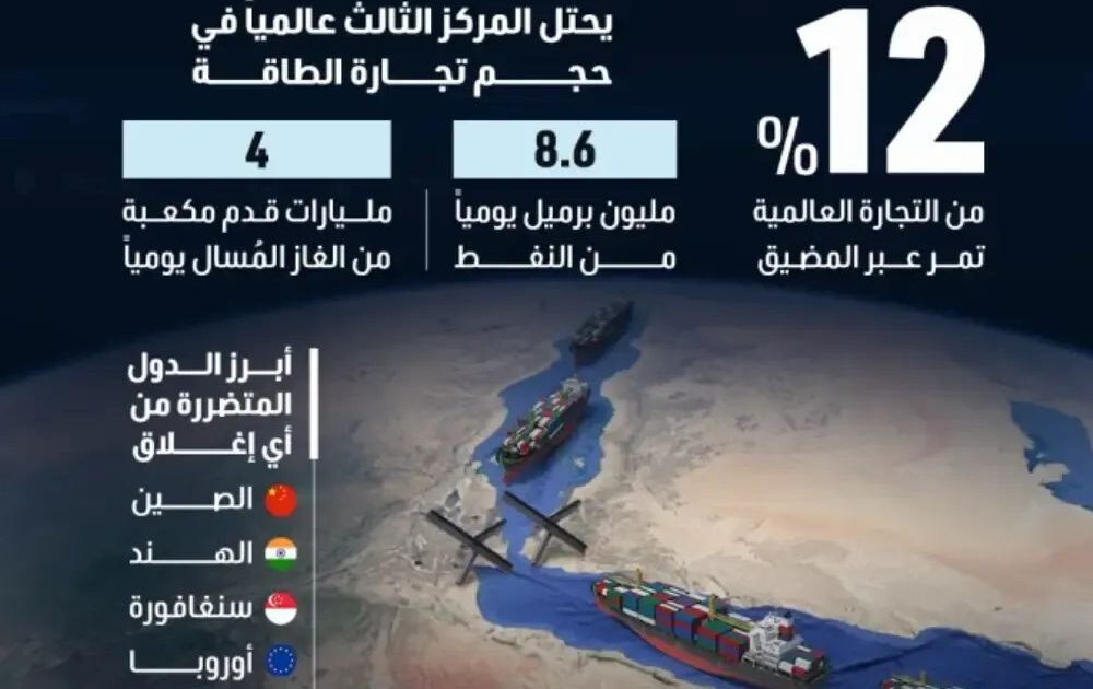 – شريان أساسي للطاقة العالمية يمر عبره يوميا من 7 إلى 10 ملايين برميل نفط.