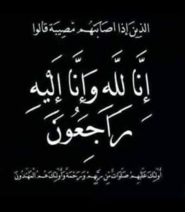 سائلين المولى عز وجل أن يتغمد الفقيدة بواسع رحمته ويسكنه فسيح جناته ويلهم ذويهم الصبر والسلوان وانا لله وانا اليه راجعون