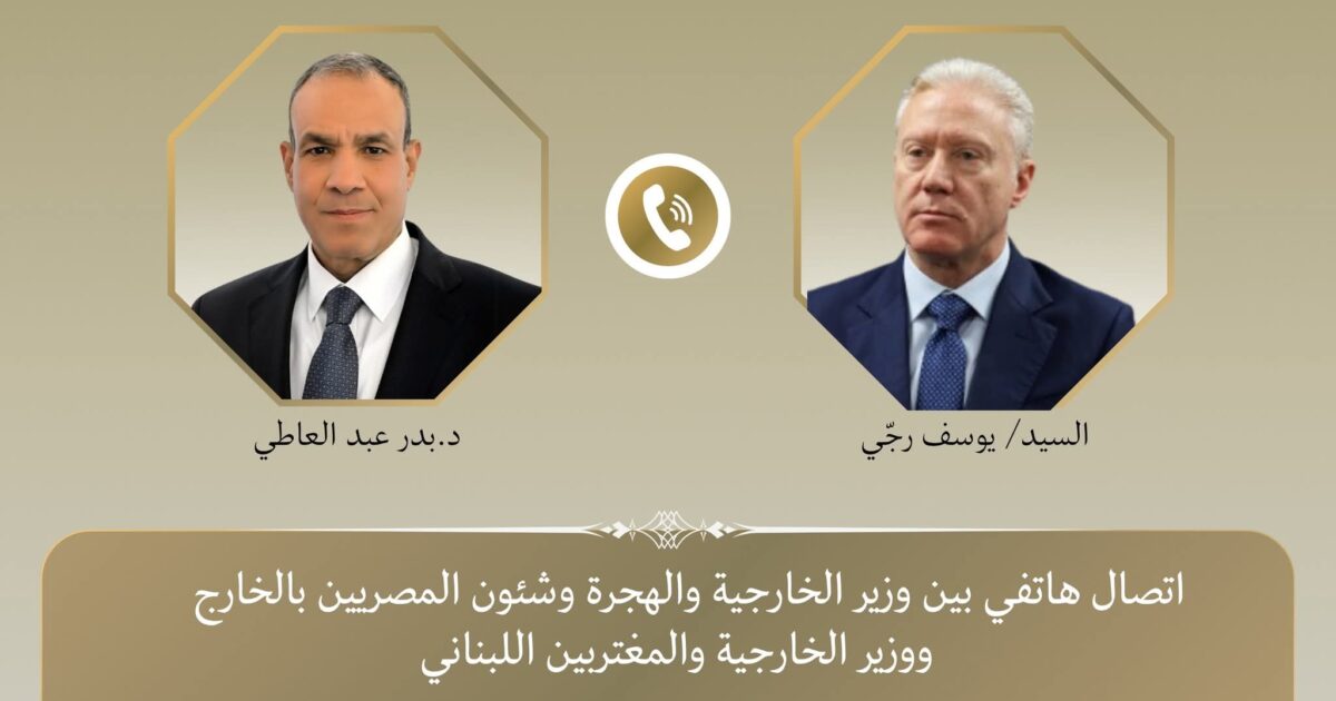 تلقى د. بدر عبد العاطي وزير الخارجية والهجرة وشئون المصريين بالخارج يوم الثلاثاء ١٤ أكتوبر، اتصالاً هاتفياً من السيد يوسف رجي وزير الخارجية والمغتربين في الجمهورية اللبنانية الشقيقة، حيث بحث الوزيران التعاون الثنائي ومخرجات قمة شرم الشيخ للسلام.