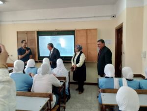 وقام بتفقد الفصول الدراسية ومتابعة حضور الطلاب وانتظامهم بالمدرسة التى تضم عدد ٩ فصول دراسية بالصف الاول الثانوى بها ٤٠٣ طالب وطالبة وعدد ٧ فصول دراسية للصف الثانى الثانوى تضم ٣٠٠ طالب وطالبة و٧ فصول دراسية للصف الثالث الثانوي تضم ٢٣٧ طالب وطالبة
