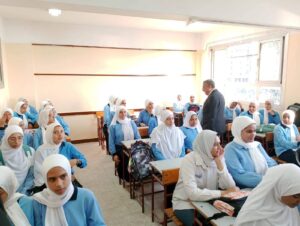كما حرص على تفقد مختلف الفصول وحجرات الأنشطة واجرى حوارا مع الطلاب بالمدرسة حول نظام البكالوريا المصرية الجديد وأهمية الانتظام فى الحضور للمدرسة وتحقيق الاستفادة القصوى من التحصيل الدراسى