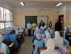 مشيدا بالجهود المبذولة وتنفيذ القرارات والتعليمات الوزارية بانتظام وانضباط سير العملية التعليمية بالبحيرة ونظافة الفصول وتفعيل لائحة الانضباط المدرسى