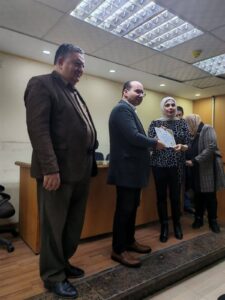 ​حيث قام الأستاذ الدكتور حمودة الجزار – وكيل وزارة الصحة بالدقهلية، بتكريم السيدة الدكتورة إسراء لطفي، مدير الإدارة الصحية بتمي الأمديد، وذلك بحضور كل من: