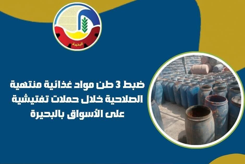 ٣ طن مواد غذائية منتهية الصلاحية تم ضبطها خلال حملات تفتيشية على الأسواق بالبحيرة