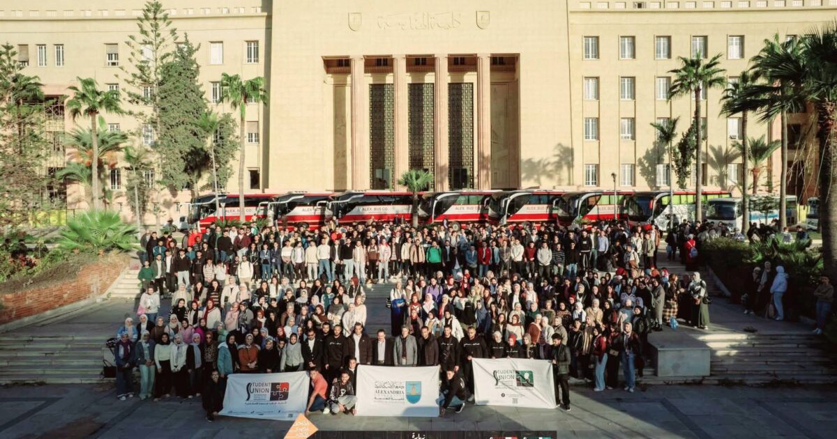 وتحرك أكبر فوج طلابي على مستوى جامعات مصر من كلية الهندسة جامعة الإسكندرية إلى المتحف المصري الكبير .