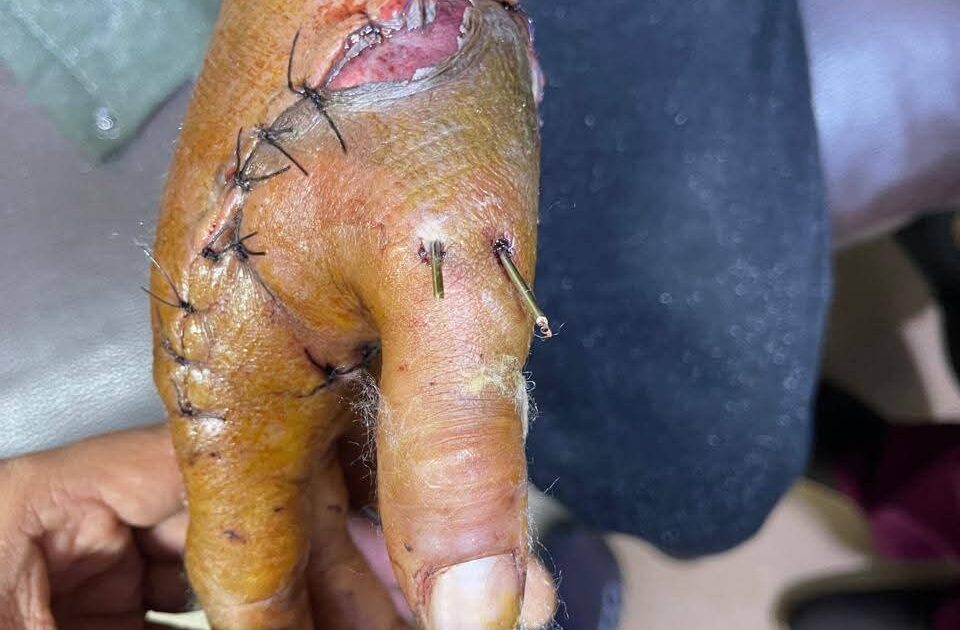 ثبت الفريق الطبي عظام الإصبع المبتور باستخدام أسلاك معدنية دقيقة، مما ساهم في استعادة الدورة الدموية بشكل طبيعي واستقرار حالة المصاب الصحية.
