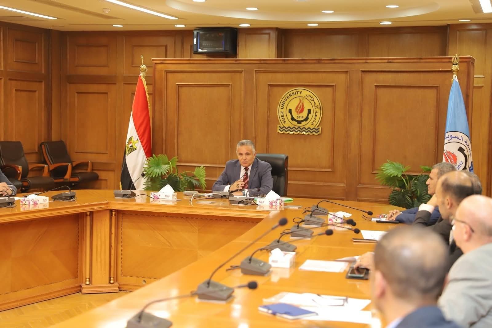 متابعة القراءةاجتماع مجلس إدارة مركز تطوير الأداء الجامعي بجامعة السويس عقد مجلس إدارة مركز تطوير الأداء الجامعي بجامعة السويس اجتماعه الدوري برئاسة أ.د.أشــــــــــرف حنيجــــــــــل رئيس الجامعة، وبحضور السادة نواب رئيس الجامعة وأعضاء المجلس. استعرض المجلس تقارير الأداء الخاصة بوحدات المركز خلال العام الأكاديمي 2024 / 2025، والتي أبرزت جهودًا واضحة في