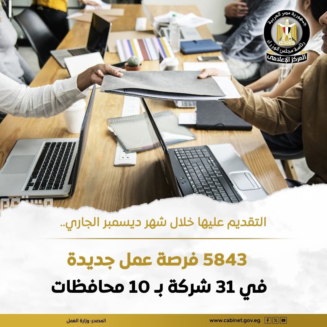 متابعة القراءةفرص عمل جديدة متاحة في مختلف المحافظات عبده الشربيني حمام أصدرت وزارة العمل نشرة التوظيف نصف الشهرية التي تتضمن فرص عمل جديدة متاحة في مختلف المحافظات، بالتعاون بين الوزارة، وشركات القطاع الخاص. الفرص متاحة في 10محافظات هي: القاهرة، الجيزة، المنوفية، السويس، القليوبية، الإسماعيلية، الوادي الجديد، المنيا، أسيوط، قنا. تضم النشرة