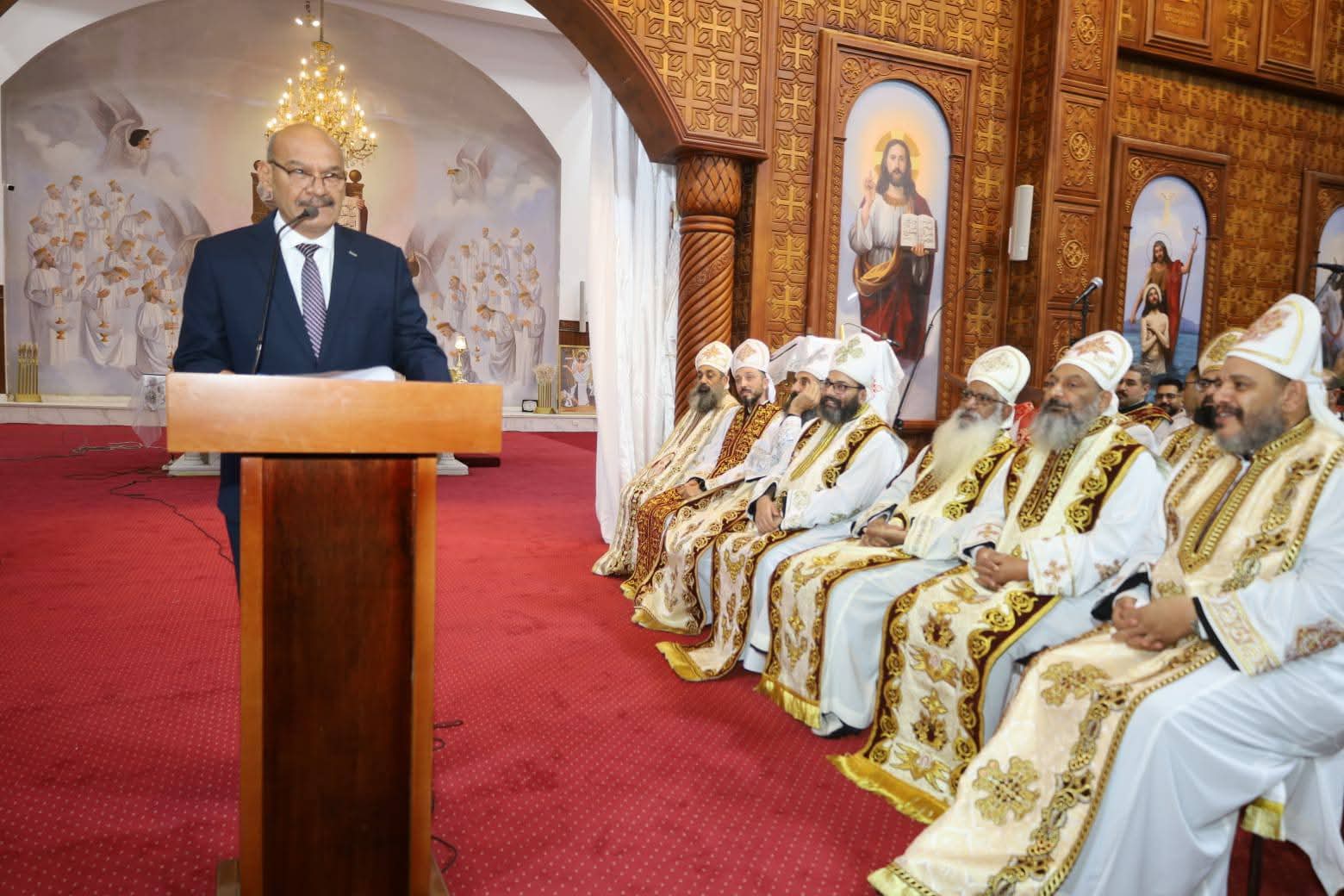 محافظ السويس وقائد الجيش الثالث الميداني ومدير الأمن والنواب وأهالي السويس يقدمون التهنئة للأخوة الأقباط بمناسبة عيد القيامة المجيد. السويس محمود بكر قام اللواء أح/ هانى رشاد على محافظ السويس، و اللواء اح/ أحمد مهدي سرحان قائد الجيش الثالث الميداني واللواء /حسام الدين الدح، مدير أمن السويس والدكتور/اشرف حنيجل رئيس