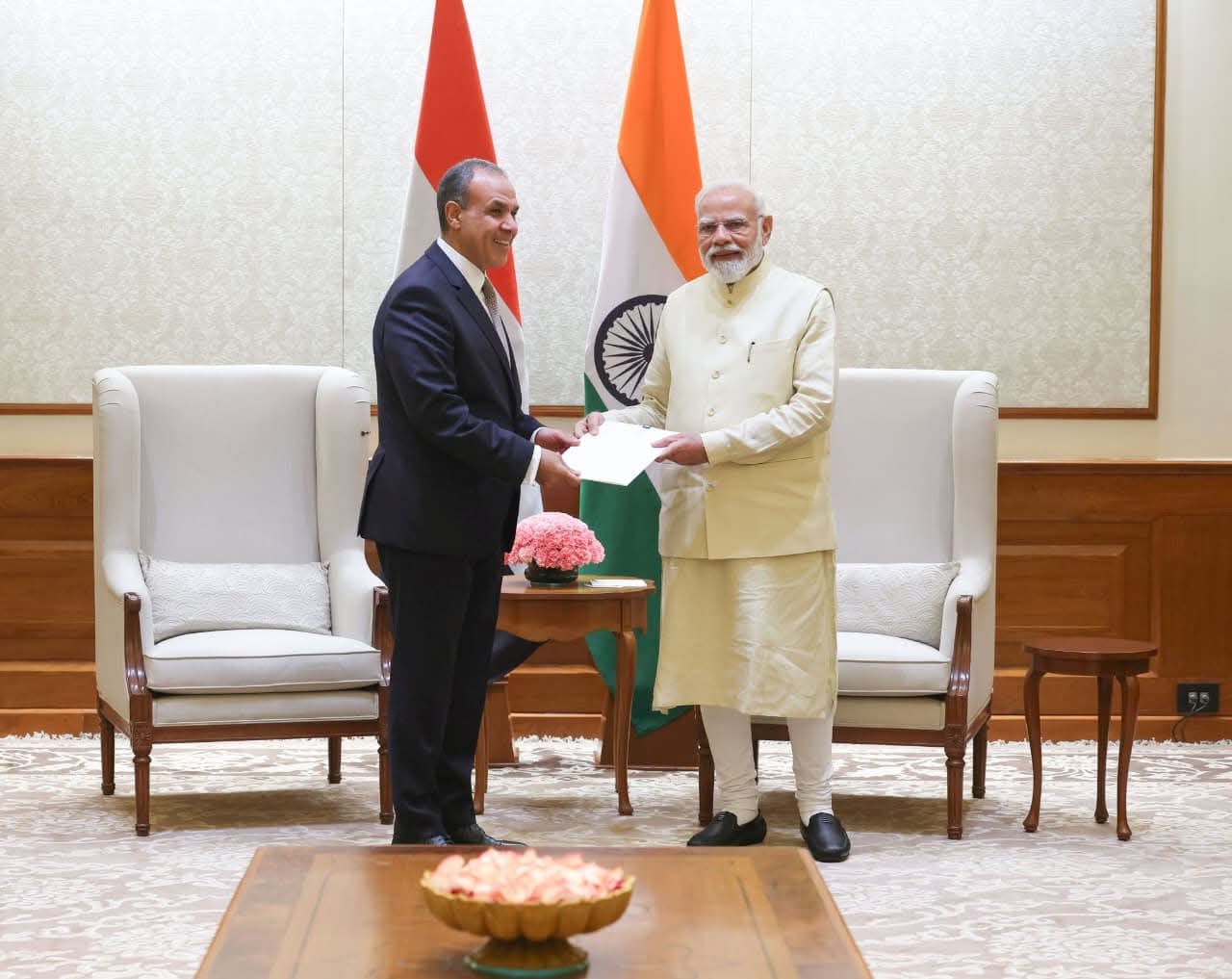 وزير الخارجية يسلم رسالة خطية من السيد رئيس الجمهورية الى رئيس وزراء الهند متابعة عبده الشربيني بتوجيهات من السيد رئيس الجمهورية، التقى د. بدر عبد العاطي وزير الخارجية والهجرة وشؤون المصريين بالخارج مع السيد ناريندرا مودي رئيس الوزراء الهندي يوم الجمعة ١٧ أكتوبر خلال الزيارة الرسمية التى يقوم بها الى