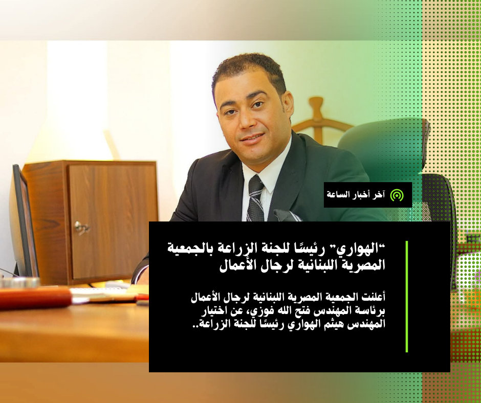 متابعة القراءة“الهواري” رئيسًا للجنة الزراعة بالجمعية المصرية اللبنانية لرجال الأعمال أعلنت الجمعية المصرية اللبنانية لرجال الأعمال برئاسة المهندس فتح الله فوزي، عن اختيار المهندس هيثم الهواري رئيسًا للجنة الزراعة. قالت الجمعية فى بيان، إن اللجنة تهدف إلى دراسة القضايا الزراعية المتعلقة بالإنتاج، التصدير، والتسويق، والعمل على رفع مستوى الإنتاجية وتحسين