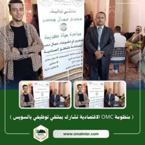 شاركت منظومة OMC الاقتصادية (مجمع عمال مصر الصناعي) في ملتقي توظيف لدعم الشباب في المحافظات والقري والاقاليم ضمن مجموعة الأنشطة والفعاليات الخدمية المختلفة بقرية كبريت المفارق بالسويس، ضمن برامج المبادرة الرئاسية المقدمة بالقرى “حياة كريمة – أنت الحياة”. تضمنت الفعاليات قافلة طبية وأنشطة ترفيهية للأطفال ومساعدة في الغرامات ومحو الأمية ومكافحة الإدمان، وذلك بمشاركة كبرى مؤسسات المجتمع المدني المصري، مثل مصر الخير وهيئة تعليم الكبار لمحو الأمية وصندوق مكافحة الإدمان، إضافة لمنظومة OMC الاقتصادية (مجمع عمال مصر الصناعي) لطرح فرص عمل للشباب. الفعاليات تمت بمشاركة ودعم التحالف الوطني للعمل الأهلي.