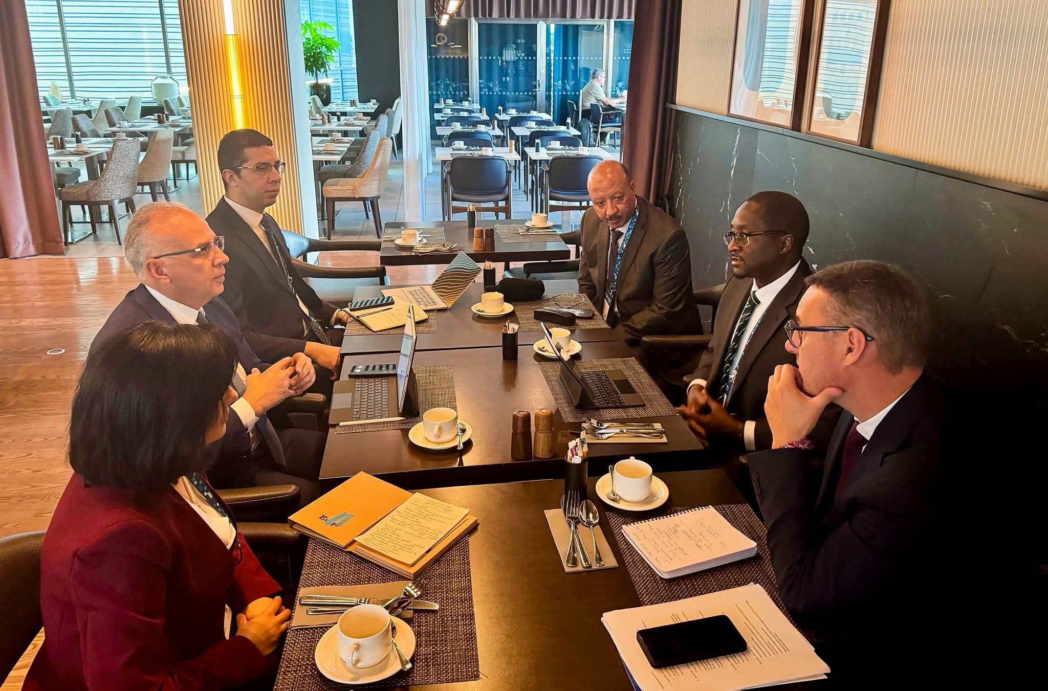 حرص مصر على تقديم كافة أوجه الدعم لضمان نجاح فترة رئاسة مصر الحالية لمرفق المياه الإفريقي متابعة عبده الشربيني ضمن فعاليات "الأسبوع العالمى للمياه" المنعقد فى ستكهولم .. التقى السيد الأستاذ الدكتور/ هانى سويلم وزير الموارد المائية والرى و رئيس مجلس إدارة مرفق المياه الأفريقي (AWF) ، بالسيد/ متشيرا يوهانس