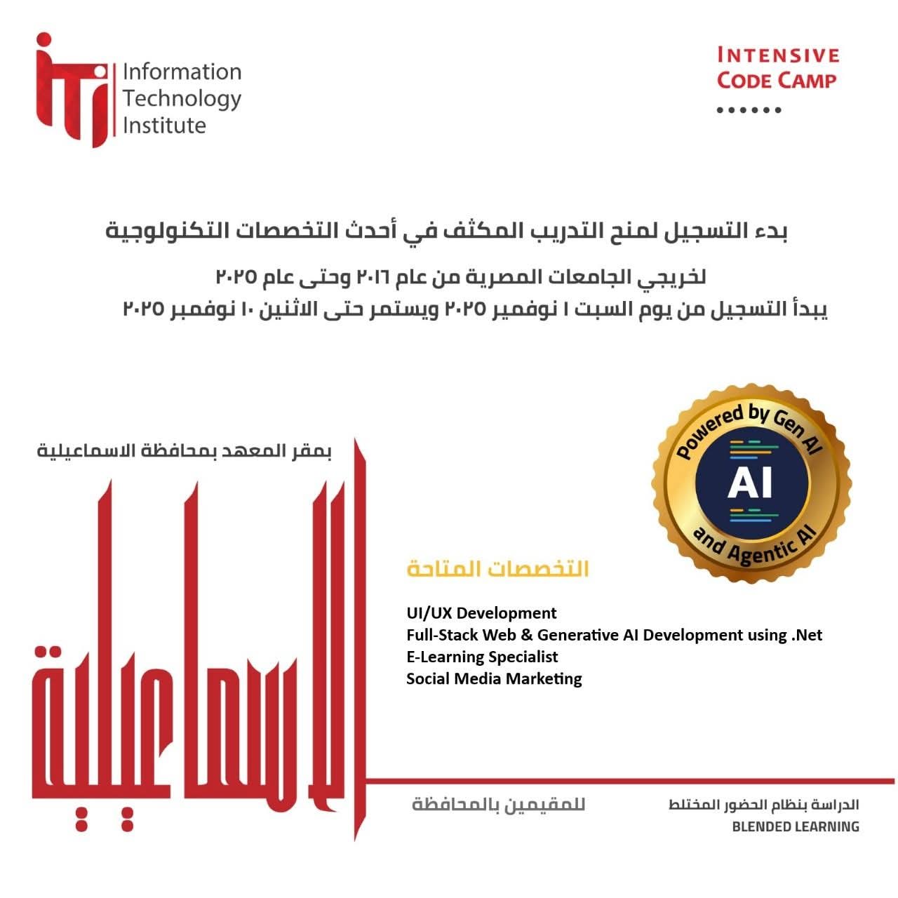 رئيس جامعة قناة السويس يعلن فتح باب التقديم لمنح التدريب المكثف المجانية المقدمة من معهد تكنولوجيا المعلومات (ITI) كتب : احمد سلامة أعلن الدكتور ناصر مندور، رئيس جامعة قناة السويس، عن بدء التقديم في منح التدريب المكثف المجانية المقدمة من معهد تكنولوجيا المعلومات (ITI) التابع لوزارة الاتصالات وتكنولوجيا المعلومات، والموجهة