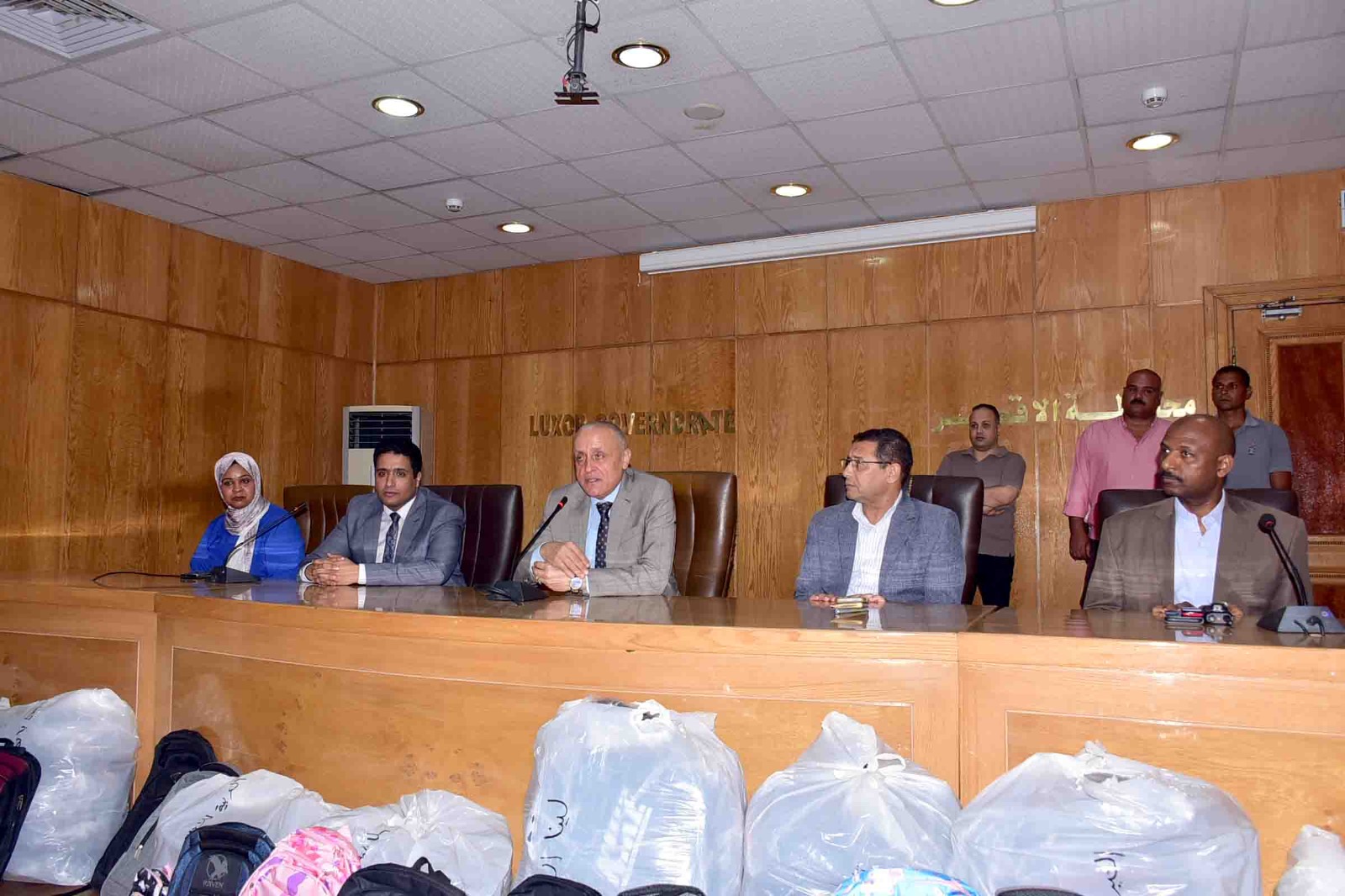 "محافظ الأقصر" يشارك فى حفل توزيع 1000 شنطة مدرسية ضمن مبادرة "راجعين بالفرحة" بالأقصر..بالصور الاقصر/نعمةالعجلان نظمت مؤسسة بنك الخير للتنمية المستدامة بالتعاون مع وحدة السكان ووحدة حماية الطفل بالمحافظة، مبادرة "راجعين بالفرحة" لتوزيع 1000 شنطة مدرسية على الطلاب، تحت رعاية وحضور المهندس عبد المطلب عماره محافظ الأقصر. جاء ذلك بحضور